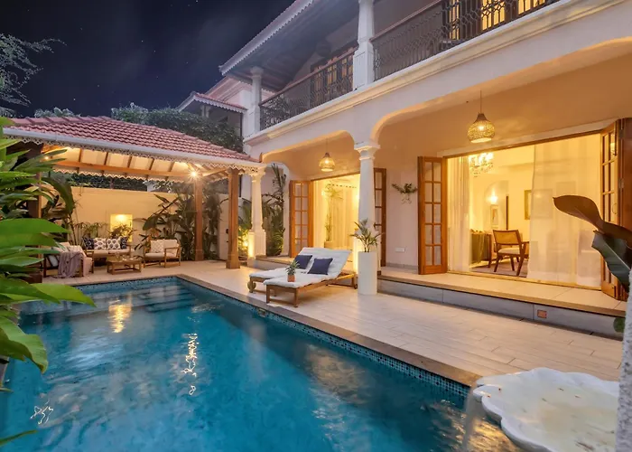 Elivaas 4 Bhk With Pvt Pool & Bar - Pinksky Villa cuenta con una piscina privada y se encuentra a unos 3 km del Calangute - Baga Rd. Con una terraza, la villa está situada a unos 3 km de las Curlies Beach Shack.